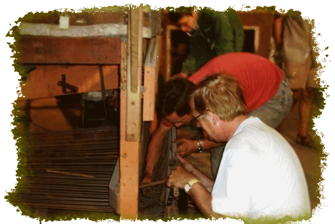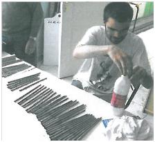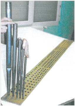 Michel Gaillard aidé par les bénévoles a patiemment remis en forme tous ces tuyaux. Ilutilise pour cela des mandrins cylindriques ou coniques de différents diamètres et de différents profils. Par des mouvements de translation et de rotation et avec l’aide d’une batte en bois, les tuyaux sont ainsi reformés.