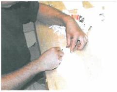 • Des pièces de peaux ont été collées au fond de chaque gravure pour étancher les fissures entre constituants de la table