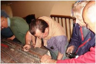 Une partie des bénévoles travaillant sur le sommier du Grand Orgue