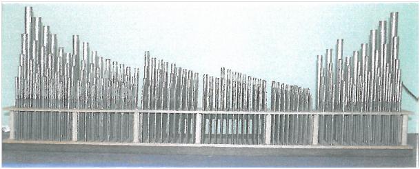 Comme le montre la photo de la page précédente, certains tuyaux sont ouverts à leur extrémité : ils ont une sonorité grave, les tuyaux bouchés ont une sonorité plus sourde.